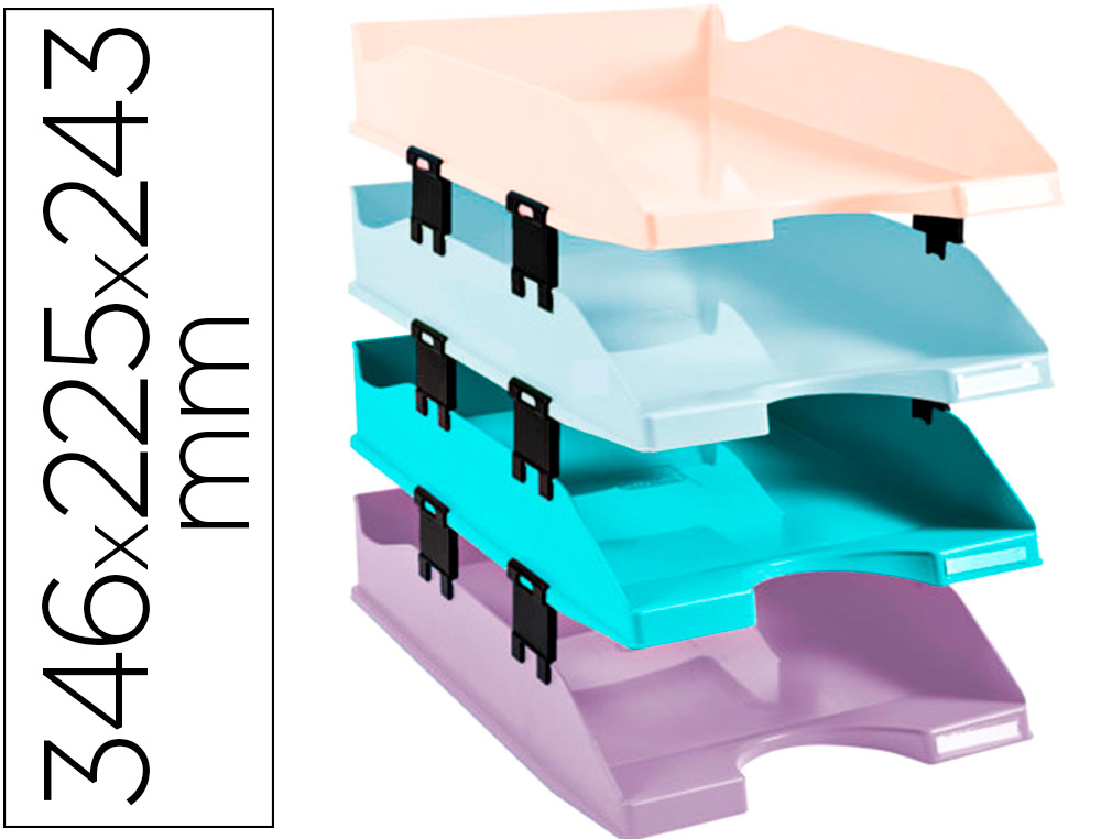 Descubre la practicidad y elegancia con el set de bandejas de sobremesa Exacompta Arlequín, diseñado para transformar tu espacio de trabajo en un entorno organizado y colorido. Este juego de 4 bandejas apilables es perfecto para mantener tus documentos y papeles en orden, añadiendo un toque de color a cualquier oficina o estudio.